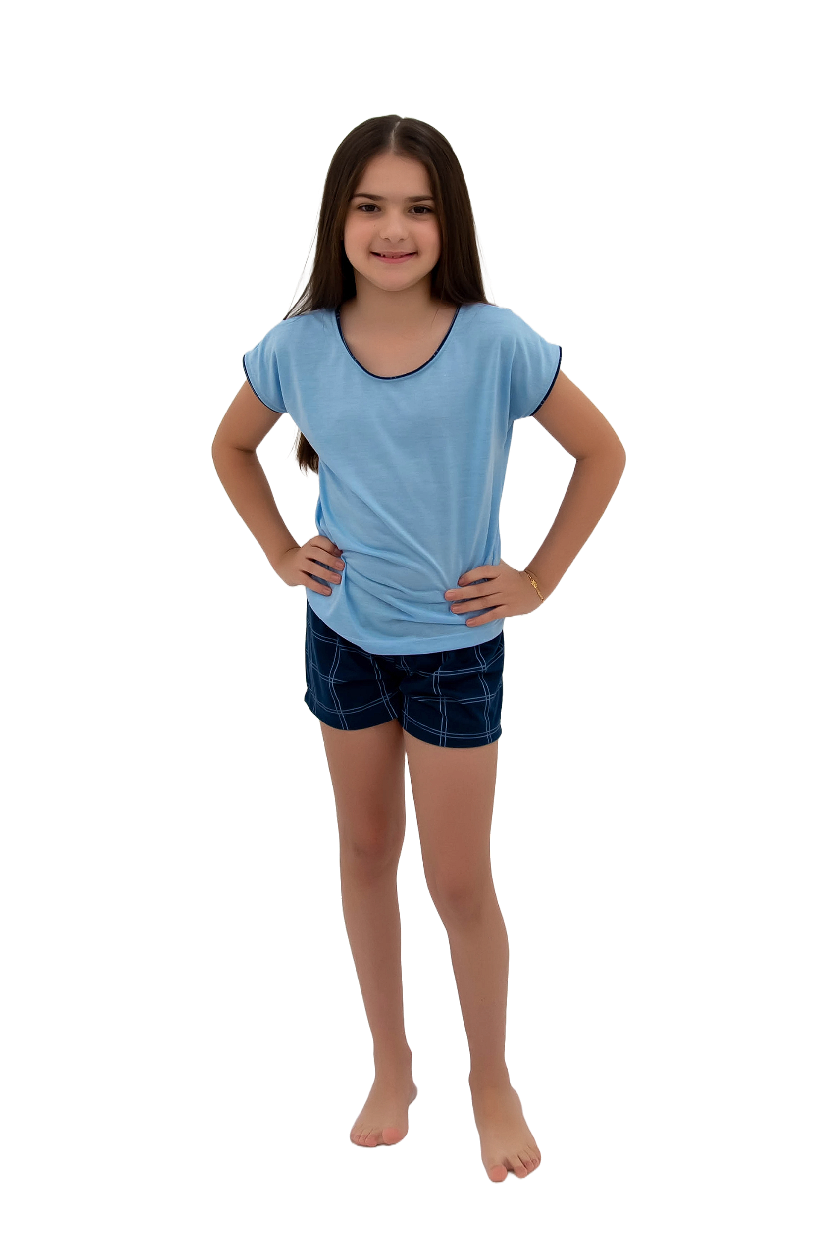 Pijama com ótimo acabamento, produzido com um tecido leve, macio, confortável e muito fresquinho, ideal para as noites quentes de verão.