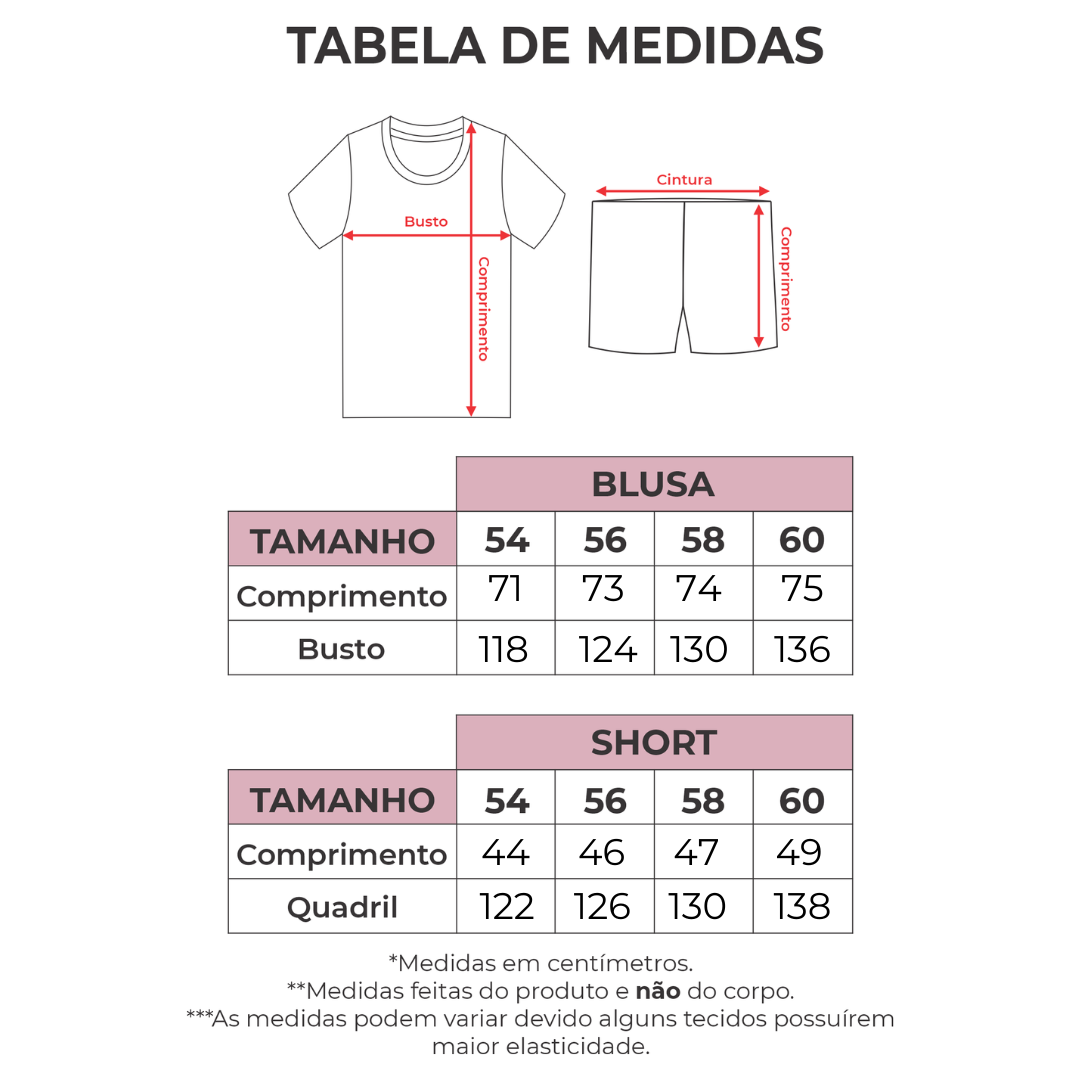 Para escolher o tamanho adequado do seu pijama confira nossa tabela de medidas abaixo: