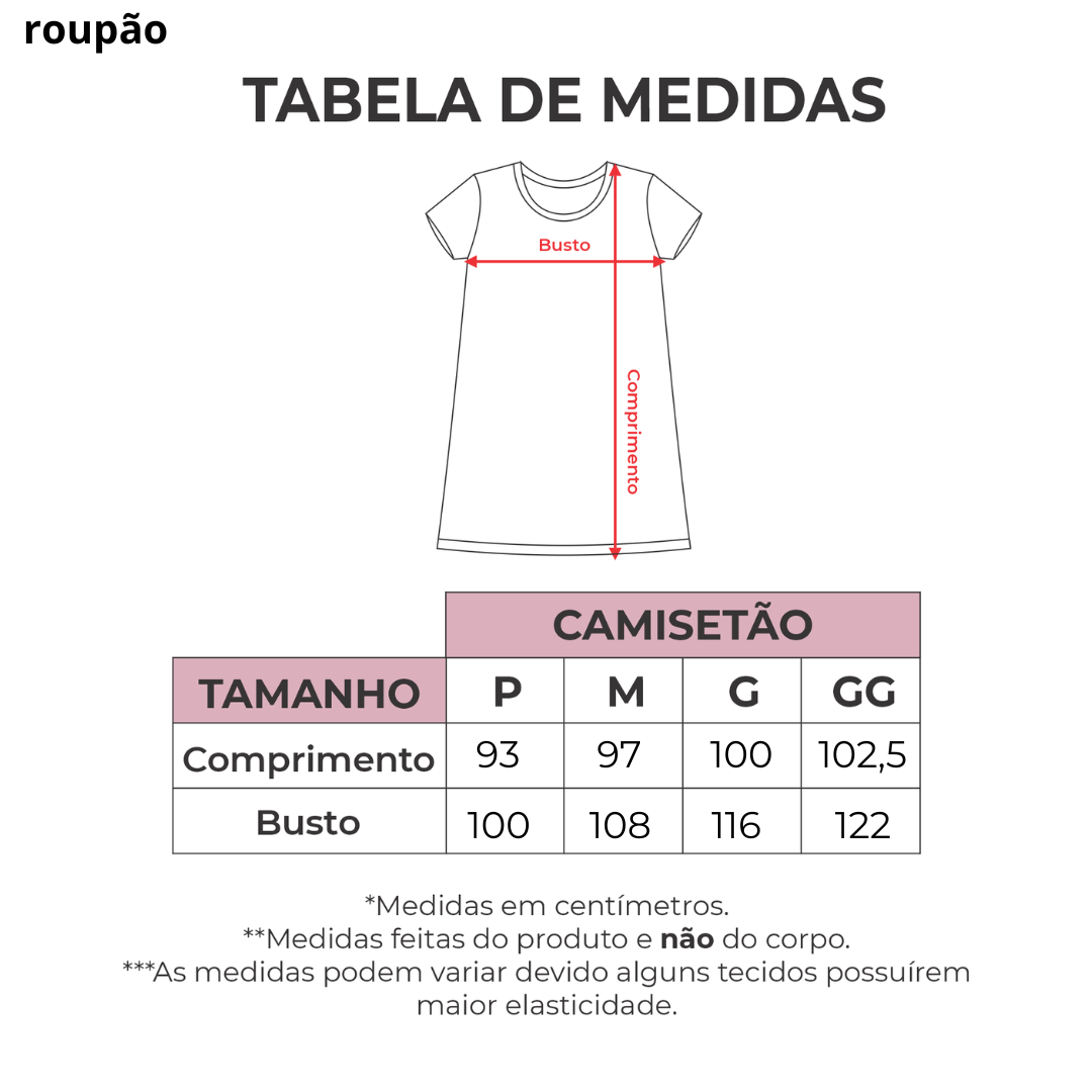 Para escolher o tamanho adequado do seu pijama confira nossa tabela de medidas abaixo: