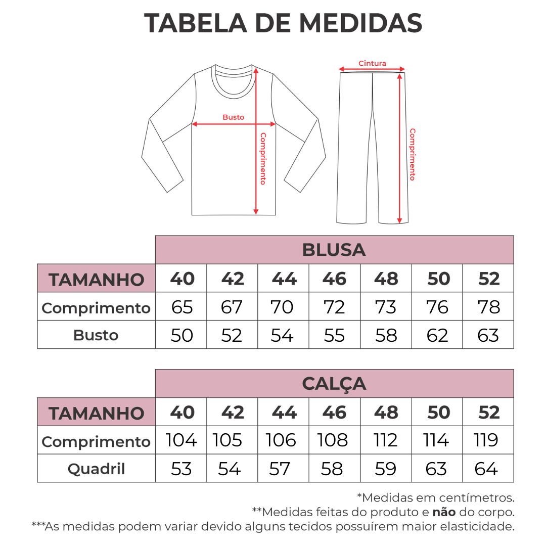 Para escolher o tamanho adequado do seu pijama confira nossa tabela de medidas abaixo: